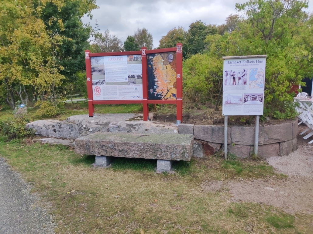 Söndag 28 september 2025 invigdes informationstavlan från Granitkusten utanför Härnäsets Folkets hus. Folkets hus-föreningen har själva ordnat med en perfekt berättarbänk, i form av en sten som legat kvar i upplag nere i Fågelvikens hamn, som nu fått ben med hjälp av stenhuggare Krister Olsson.